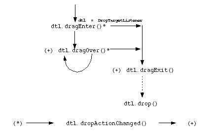 1It would be nice to design an API that would allow the DragSource to be notified of the DropTarget’s selected operation before the DropTarget invokes the source Transferable’s getTransferData() method, sadly however, OLE’s bass-ackwards DnD protocol forces the above design on us where the operation is reported after it has occurred, this makes life for the source implementor harder when supporting certain “Link” semantics.