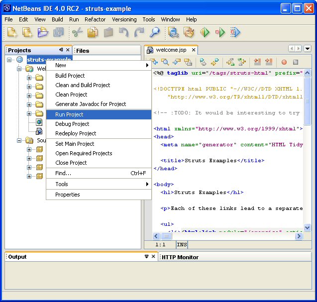How to setup a basic Struts project using NetBeans IDE 4.0